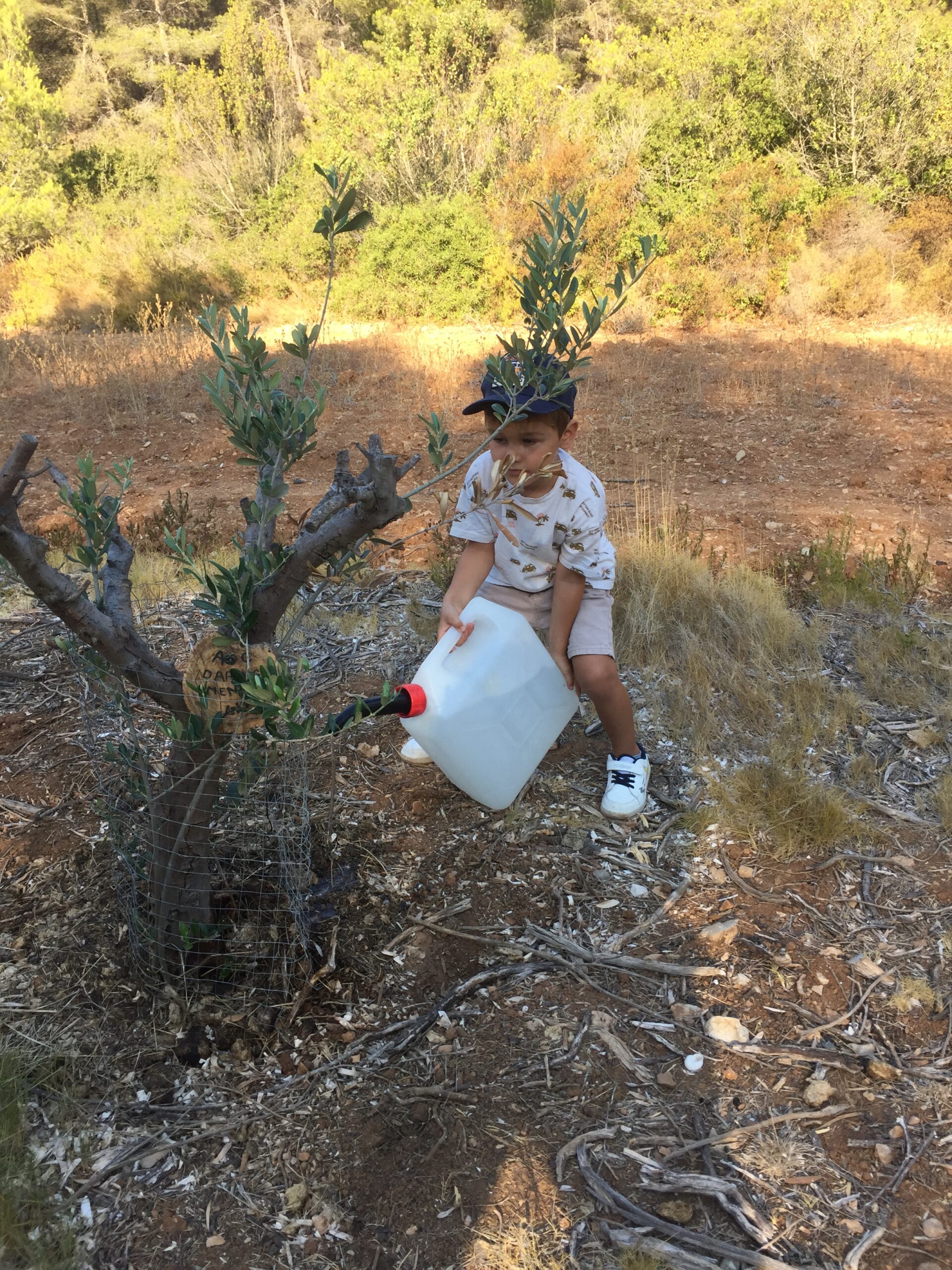 Ce matin le café a été offert au vallon de Jaume par Joël, Philippe a même livré le marc à ses oliviers préférés, Jean Pierre FRANCIA a manié le sécateur, Pierre a engrangé des images, Christian a promené son fidèle TOYOTA chargé de 220 litres d’eau et les plantations de la Ste Catherine ont cru au miracle, de l’eau, de l’eau en bidons faute de pluie !