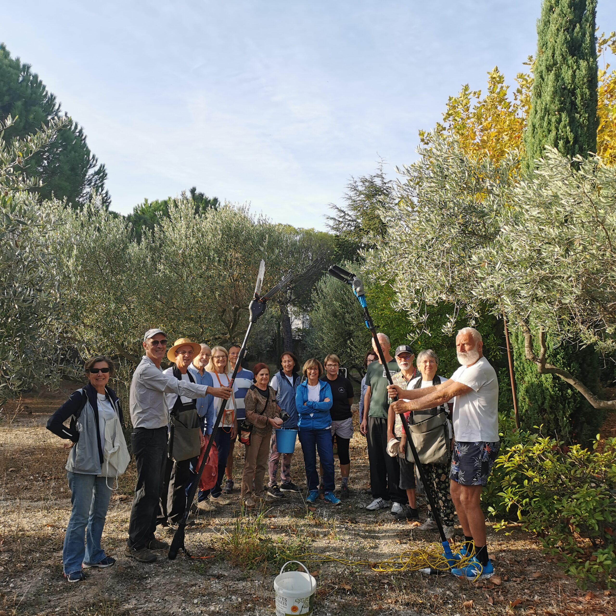 Ensuite neuf téméraires ont répondu à l’invitation du moulin de Velaux à la formation sur la taille des oliviers, passionnant et motivant.