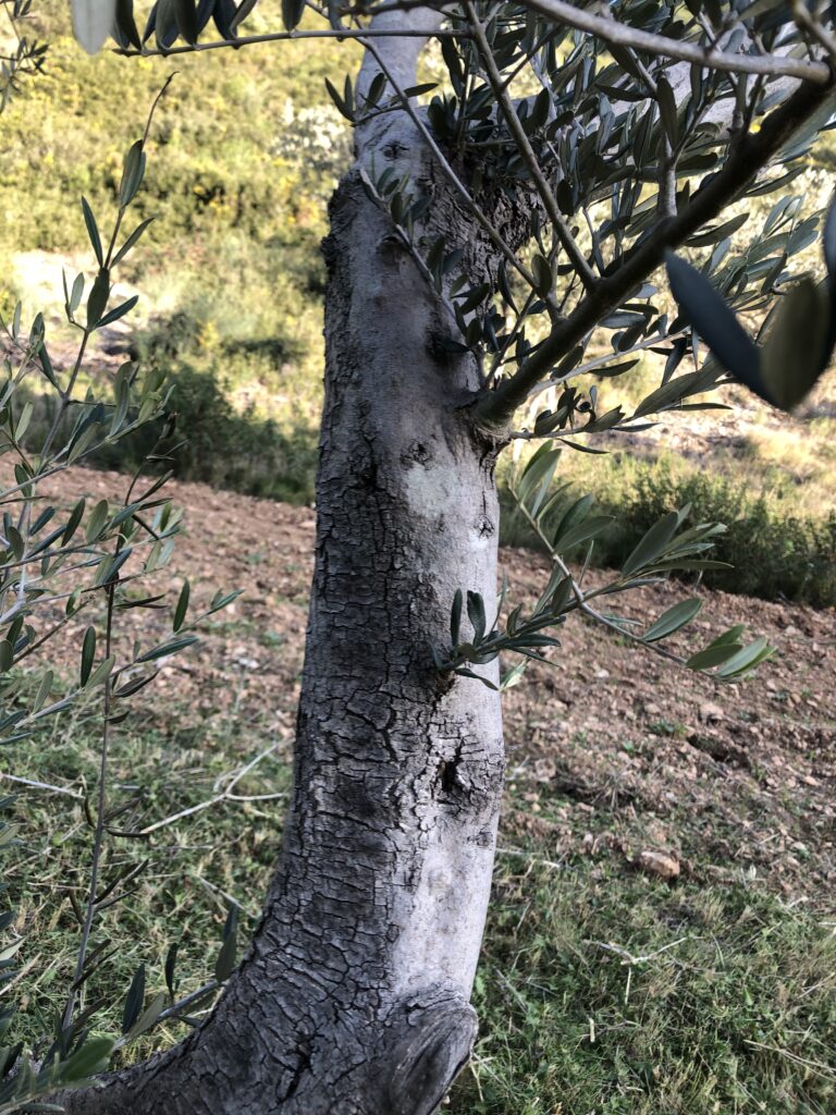 PS : GUY, notre expert en taille des oliviers apporte quelques modifications subtiles qui s’expliquent par les conseils précédents, lorsqu’une taille agressive a été effectuée sur un olivier, il apparaît en réaction dans les mois qui suivent de nombreux bourgeons sur le tronc et les charpentières, ces bourgeons génèrent des petites branches secondaires, l’application stricte et trop précoce de la règle RMC (ce qui Rentre, ce qui Monte, ce qui Croise) peut être préjudiciable à l’olivier et nous avons remarqué que Guy respecte ces repousses défensives en se contentant de couper l’extrémité qui s’allonge et en préservant le « parasol » !