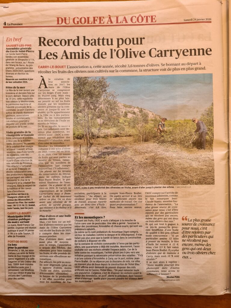 Un peu de fierté collective ne peut que consolider le groupe de l’AOC, une trentaine de personnes peuvent affirmer sans mentir « j’ai planté des oliviers », plus de 60 « j’ai cueilli des olives » et comme ces actions collectives se font dans le bénévolat elles n’en ont que plus de valeur !