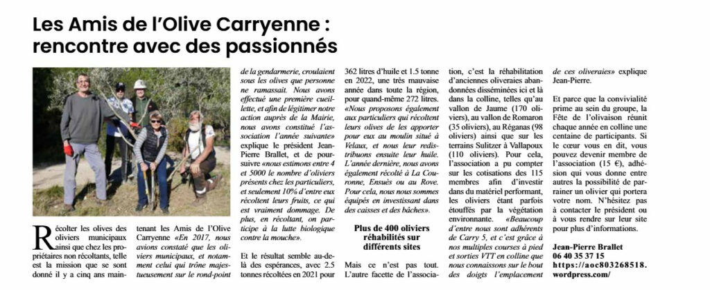 ARTICLE paru dans CALANQUES N°70 AVRIL 2023